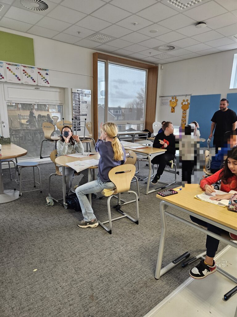Zakaria is onze meester. Na schooltijd is er een kwartiertje voordat de les begint. In dat kwartiertje mag je even chillen, je kan wat eten en daarna moet je aan het werk. Je mag met z’n tweeën samenwerken als je dat zachtjes doet. Als iets niet lukt, steek je je vinger op en komt de meester je helpen als je een vraag hebt. Hij legt het duidelijk uit en helpt heel goed.